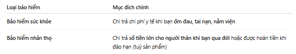 - Ngắn hạn: Dùng bảo hiểm sức khỏe để bảo vệ chi phí y tế bất ngờ.
