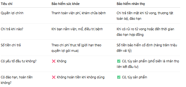 Dù cùng mục tiêu bảo vệ tài chính trước rủi ro, nhưng bảo hiểm nhân thọ và bảo hiểm sức khỏe có bản chất, thời gian, quyền lợi và vai trò hoàn toàn khác nhau.